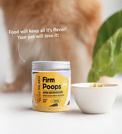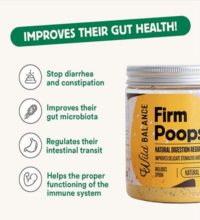 مکمل Firm Poops از برند Wild Balance یک پودر طبیعی و سالم برای حمایت از سلامت دستگاه گوارش حیوانات خانگی است.